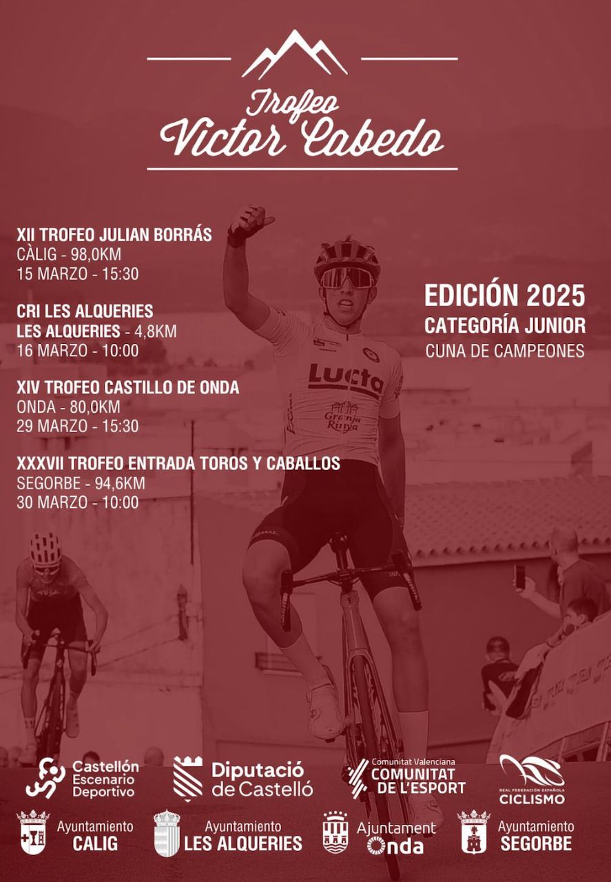 El prestigioso Trofeo Víctor Cabedo regresa en su edición 2025, reafirmando su estatus como una de las competiciones más importantes del calendario junior en España. Con el eslogan de Cuna de Campeones, cuenta con un recorrido de cuatro exigentes pruebas a lo largo de la provincia de Castellón, reuniendo a los mejores ciclistas nacionales en su camino hacia el profesionalismo. Prueba de ello son corredores como Héctor Álvarez, ganador de dos etapas en 2024, y el vencedor absoluto Adrià Pericas que en la actualidad forman parte de las escuadras de desarrollo de Lidl Trek y UAE Team Emirates